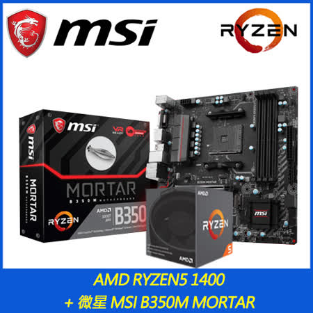 雙11購物節-【AMD組合套餐】AMD RYZEN5 1400+微星 MSI B350M MORTAR 大陸雙11光棍節